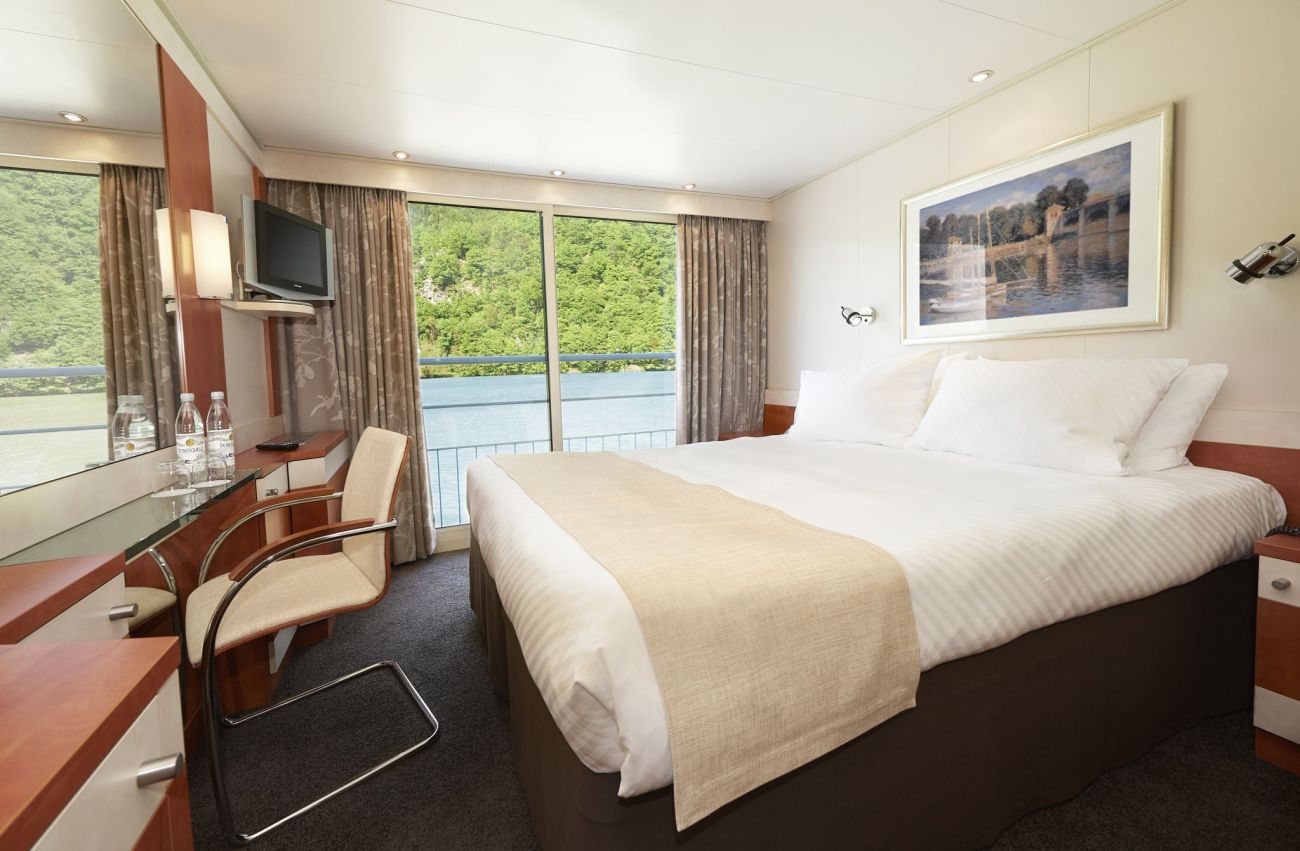 Каютите на горната палуба имат големи френски прозорци, които се отварят.
