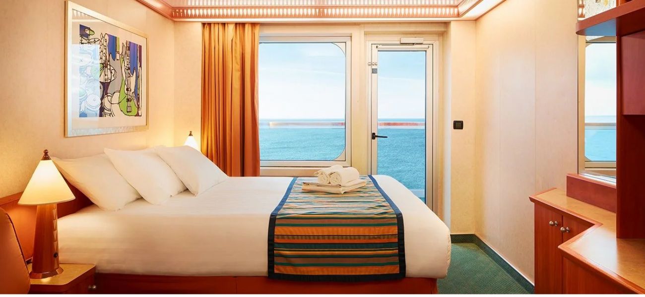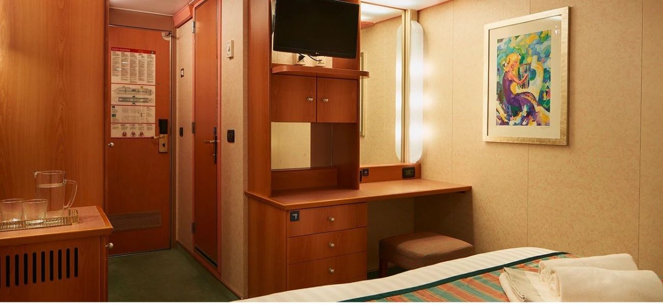 Корабът предлага каюти с балкон, суити, каюти с прозорец / не се отваря /, вътрешни каюти, каюти за инвалиди. Всички с интерактивна ТВ, телефон, сейф, климатик, сешоар, интернет срещу заплащане.