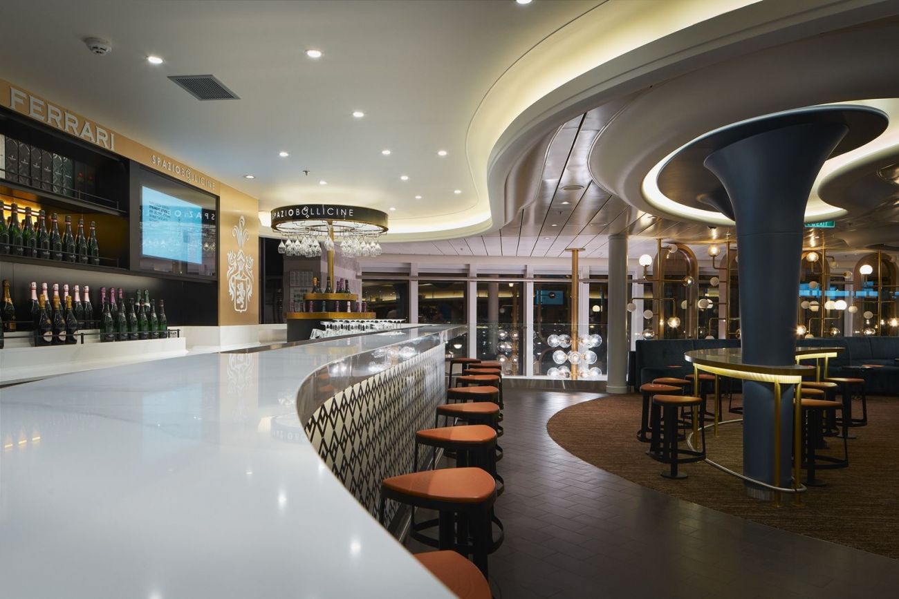 19 бара със различна атмосфера и гледка – намерете вашето кътче или опитвайте нещо ново всеки ден – Ferrari шампанско бар, Aperol Spritz bar, Campari bar, Bacaro Veneziano bar, джаз пиано бар или диско бар.