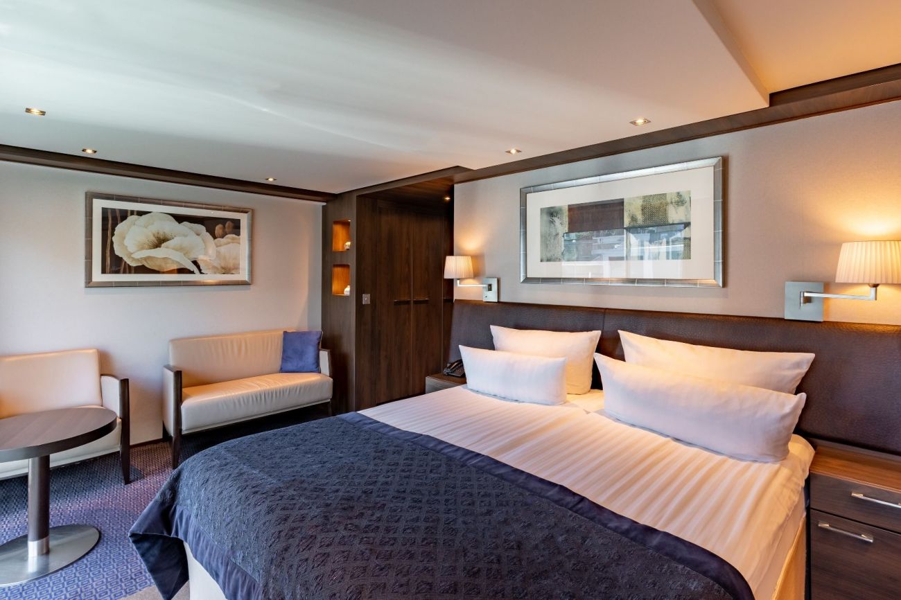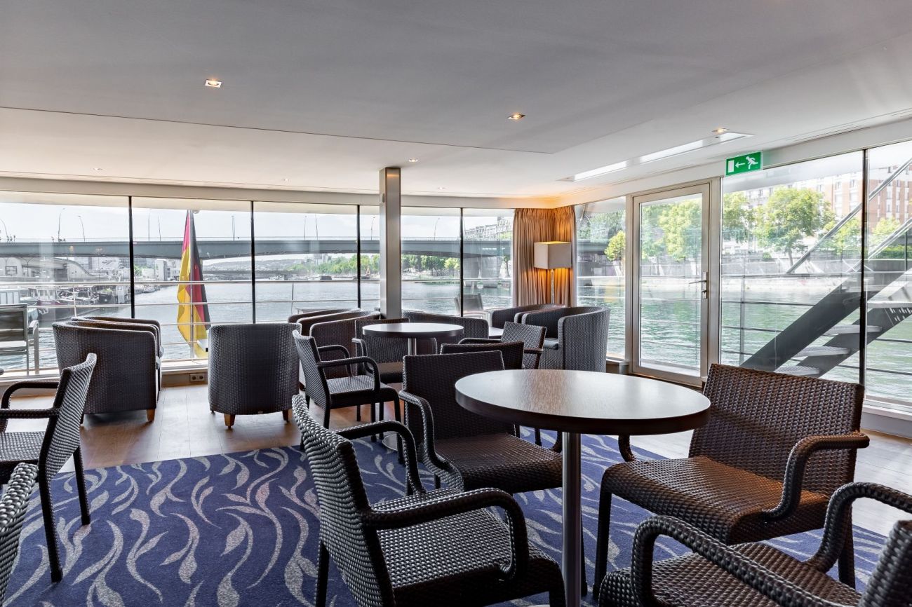 Горна палуба има 24 каюти и 4 суити с панорамни френски прозорци.