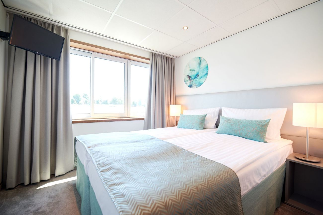 Каютите на горната палуба имат големи френски прозорци, които се отварят.