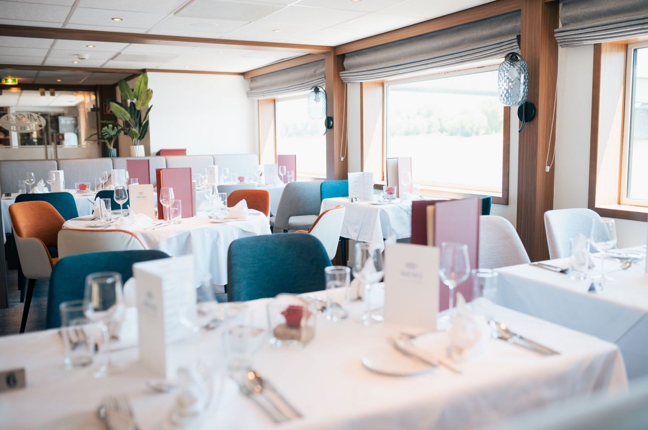 На разположение на гостите са ресторант, бар, библиотека, безжичен интернет срещу заплащане. Корабът разполага с 3 палуби с каюти, които са свързани с асансьор и слънчева тераса със шезлонги. Капацитетът е 192 гости. Реновиран е през 2022 г.