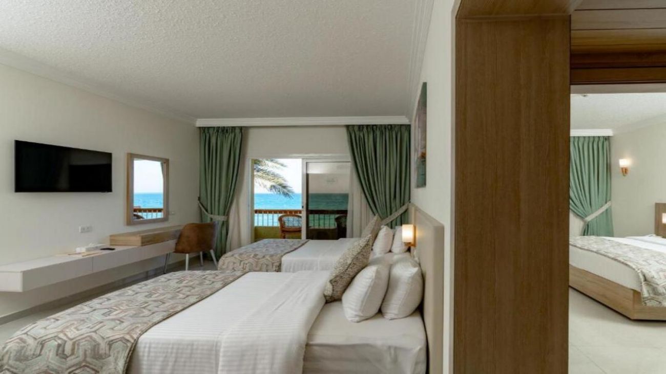 Palm Beach Resort 4* е обзаведен в модерен стил, а обстановката и атмосферата са традиционни за Египет. Хотелът разполага с прекрасни гледки към Червено море, с 2 басейна, собствен пясъчен плаж и клуб по гмуркане. Гостите на хотела имат на разположение още: ресторант с международна кухня, бар с напитки и леки закуски, релаксиращи масажи, сауна и фитнес, екип от аниматори, организиращи различни занимания и игри през целия ден. Центърът по гмуркане - The Caves, предлага различен тип водни спортове, като гмуркане, шнорхелинг и уиндсърф.