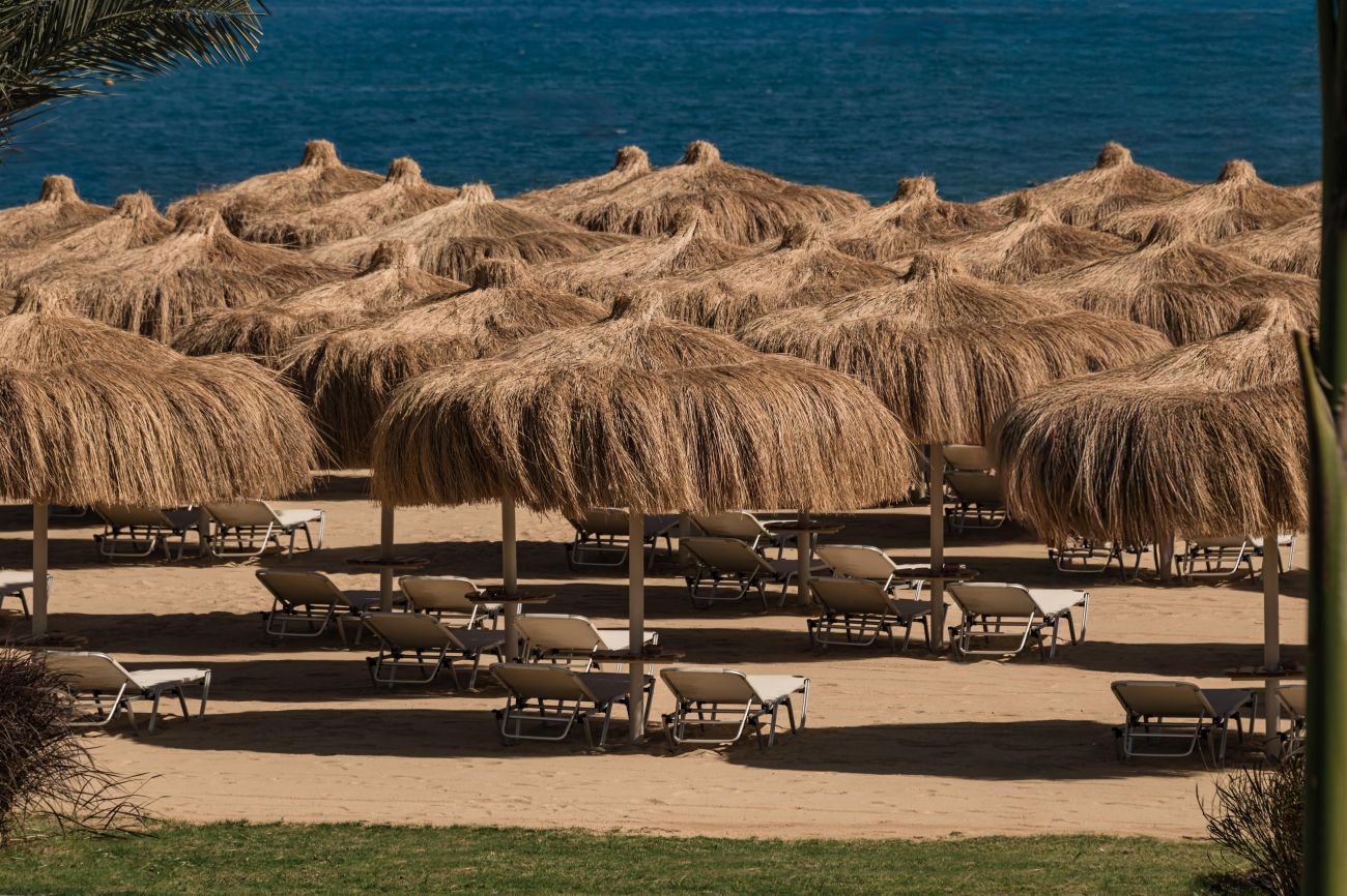 Собствен, пясъчен, кей. Чадъри, шезлонги, матраци и плажни кърпи на плажа и при басейна - безплатно.