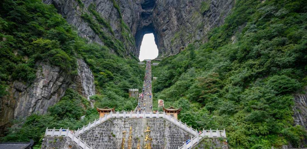 Закуска – сух пакет. Трансфер до гарата. Отпътуване с влак за Джандзядзие. Пристигане и качване на лифт до планината Тиенмън. Тя се намира в централен Китай и името ѝ означава “небесна порта” или „врата към рая”. Възможност за разходка по т.нар. „стъклена пътека“, намираща се на 1400 м над морското равнище. С дължината от около 60 метра и широчина по - малко от 1 м., пътеката, разположена на склона на планината, има стъклен под и спира дъха на всеки дръзнал да се разходи по нея. Придвижване пеша (около 30 мин.) до пещерата Тиенмън, дълбока 30 метра и известна с 999-те стъпала, водещи към нея, които се наричат „стълбата към Рая“. Трансфер до хотела. Вечеря. Нощувка.