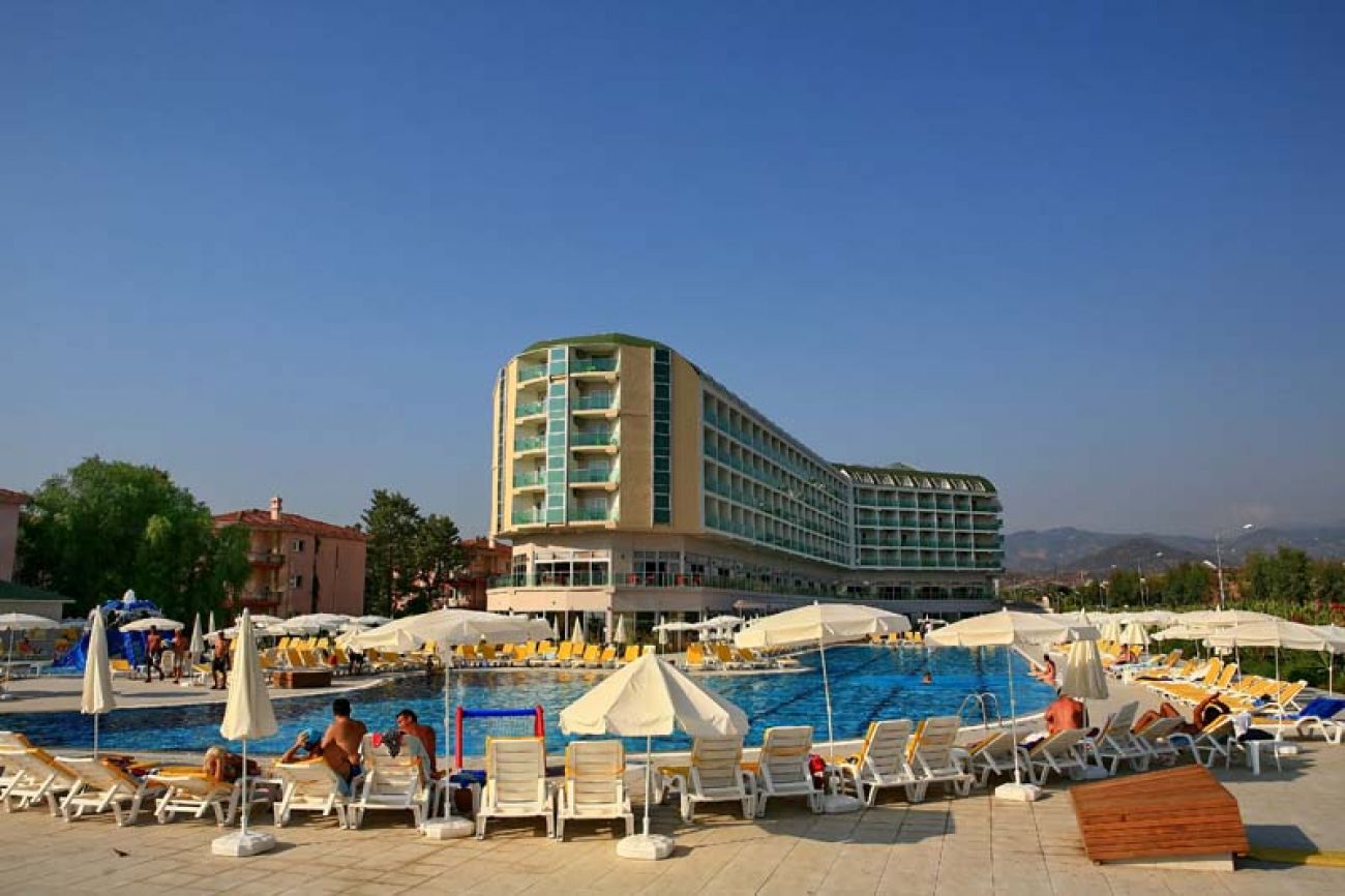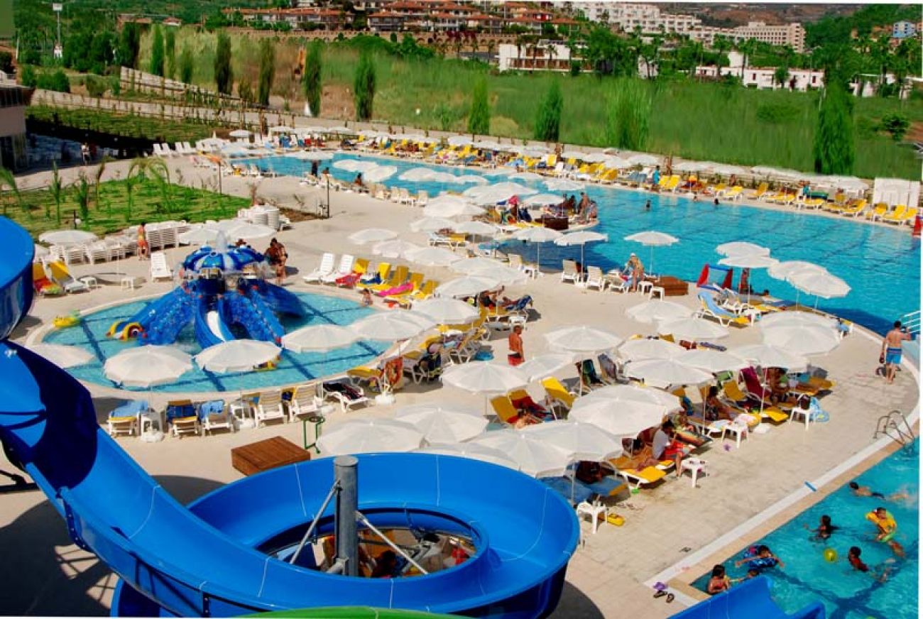 Основен ресторант, 3 Ала Карт ресторанта (турски, рибен, барбекю - с предварителбно записване, за 1 седмичен престой се полага 1 посещение - безплатно), 6 бара, 2 открити и 2 закрити басейна, 1 конферентна зала, SPA център, магазини, фризьорски салон. За децата: детски басейн, мини клуб, анимация, детска площадка. Безплатни услуги: сауна, турска баня, плажен волейбол, тенис на корт, тенис на маса, баскетбол, боулинг, безжичен интернет (на lobby). Платени услуги: масаж, игрални автомати, лекар, водни спортове. Плаж: Собствен - пясъчен. Чадъри, шезлонги и матраци на плажа и басейна - безплатно.