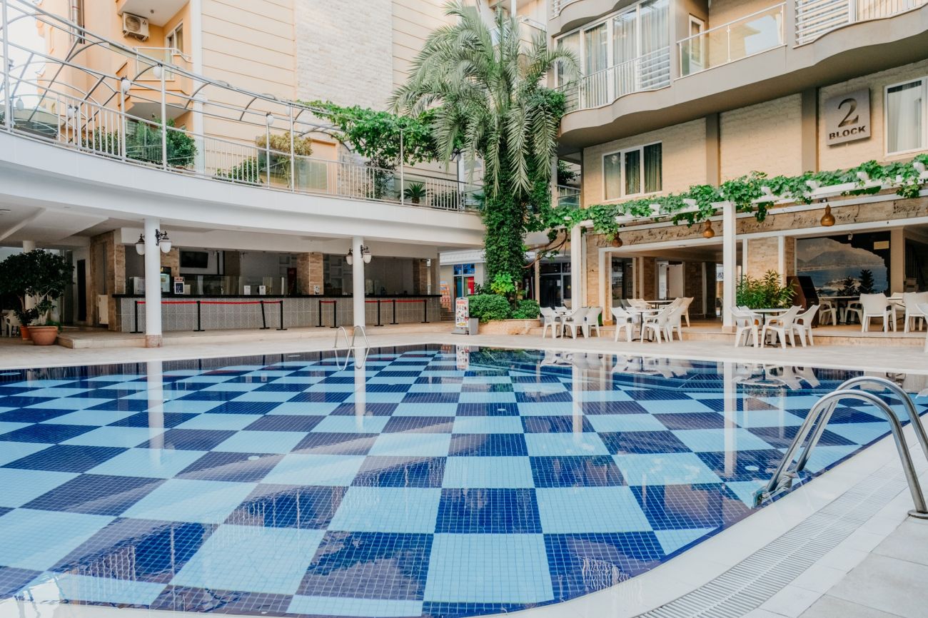 Намира се на 120 км от летище Анталия и на 40 км от летище Gazipaşa, само на 50 м от плаж Клеопатра, където притежава собствен плаж. Центърът на Алания се намира на 1 км от хотела и до него се стига лесно с общетвен транспорт или такси. Построен през 2010г върху обща площ от 7.500 m², хотелът се състои от 7 отделни сгради и разполага с общо 293 стаи. Последно реновиран през 2020г.