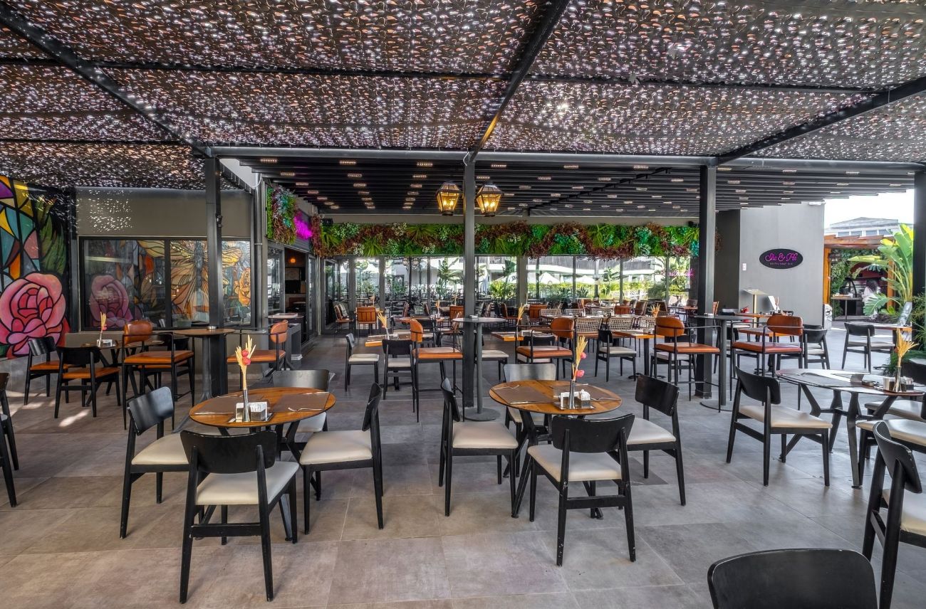 3 основни ресторанта (Gourmet, детски ресторант – IXY Planet, She & He – в зоната за възрастни), 3 а-ла-карт ресторанта - Thymàri (средиземноморски, 1 безплатно посещение при минимум 5 нощувки), Mazu (азиатски), Apollon (стекхаус) - нужна е резервация за всички а-ла-карт ресторанти, 4 бара (лоби бар, 2 бара при басейните, бар на плажа), Старбъкс кафетерия (над 16-годишна възраст), сладкарница, дискотека, 1 основен открит басейн, басейн в зоната за възрастн фитнес център, СПА център.