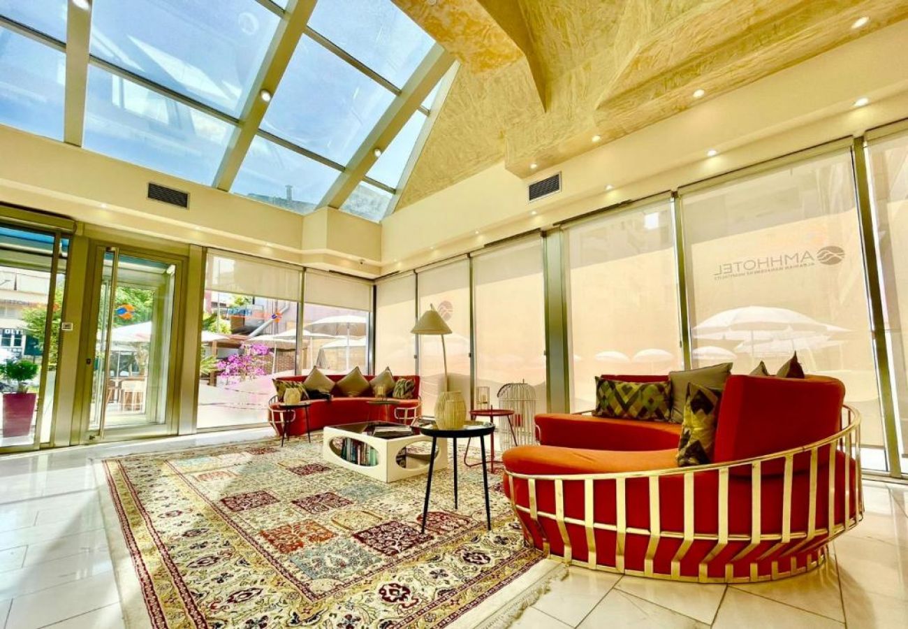 Обществен с частна зона на AMH Hotel, пясъчен, на 70 м от хотела. Шезлонги и чадъри в частната зона на хотела – безплатно според наличността