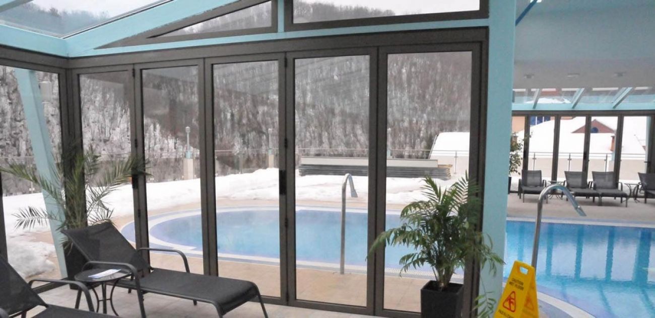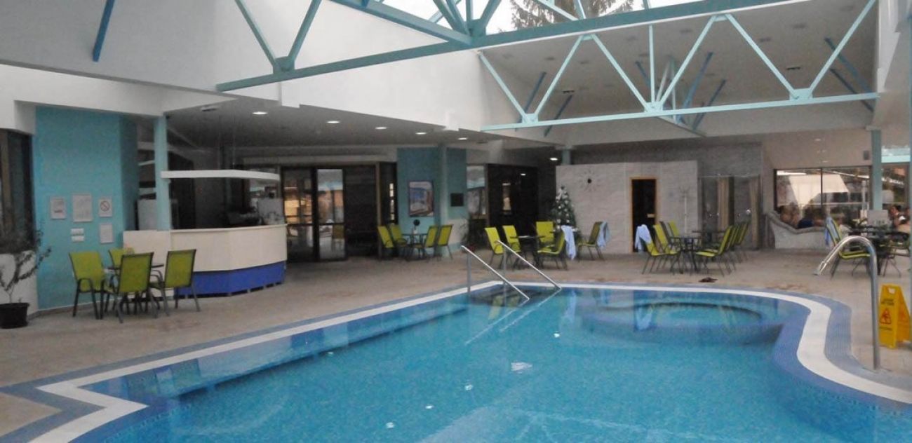 СПА център: Уелнес центърът на хотела предлага вътрешен и външен басейн, сауна, парна баня, джакузи, тепидариум - топло помещение с подово отопление и подгреваеми седалки, солна стая.