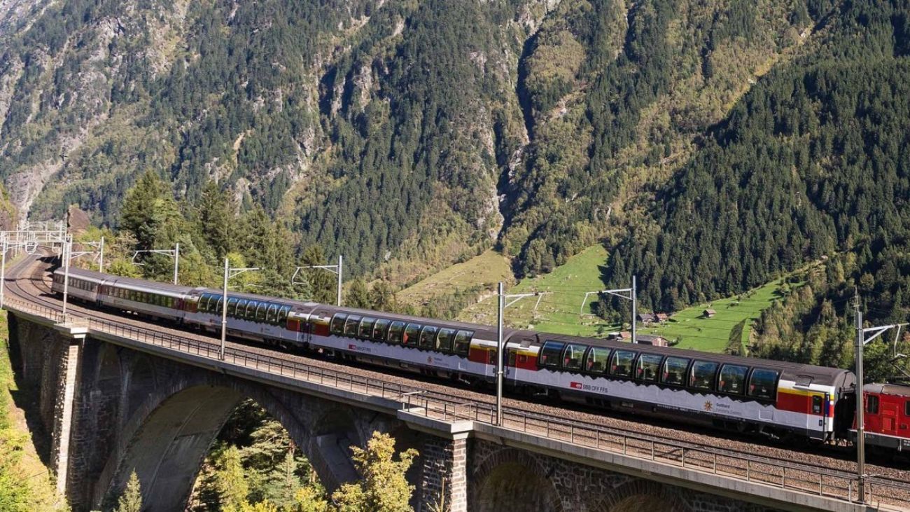 - резервация и билет (1-ва класа) за панорамната високопланинска железница "Gotthard Panorama Express" от Флюлен до Лугано