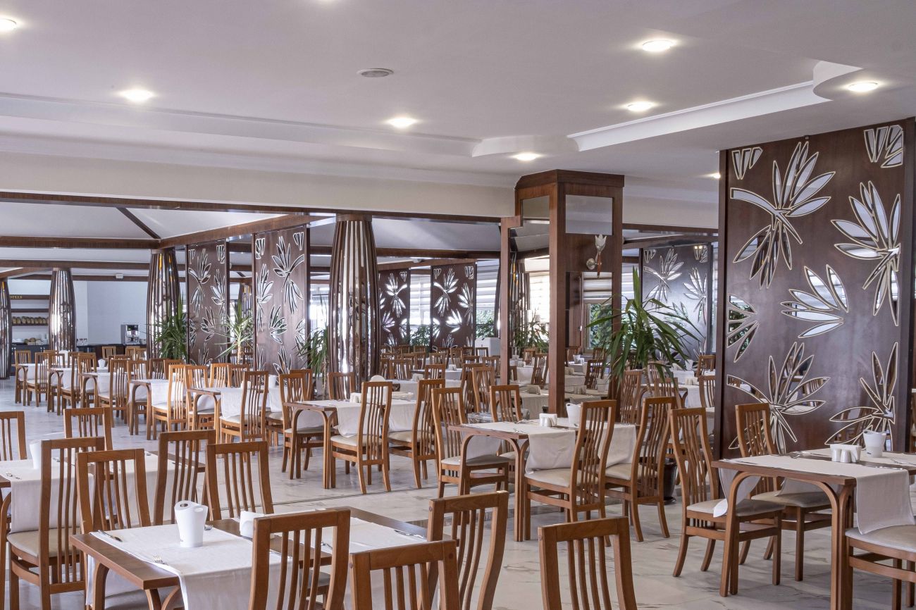 Основен ресторант, 3 а-ла-карт ресторанта (рибен, барбекю, италиански – 1 безплатно посещение на 1 от ресторантите при минимум 7 нощувки, с предварителна резервация), 2 снек ресторанта, сладкарница, 5 бара, 3 открити и 1 закрит басейн, 4 водни пързалки, СПА център, магазини, 2 конферентни зали.