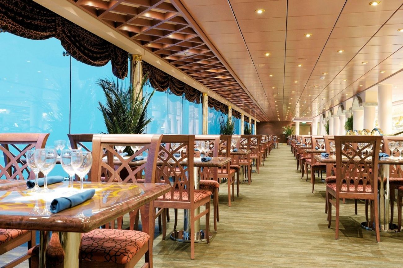 Ресторанти: 2 основни, пицария и бюфет на самообслужване, включени в цената на круиза и ала карт – суши бар.