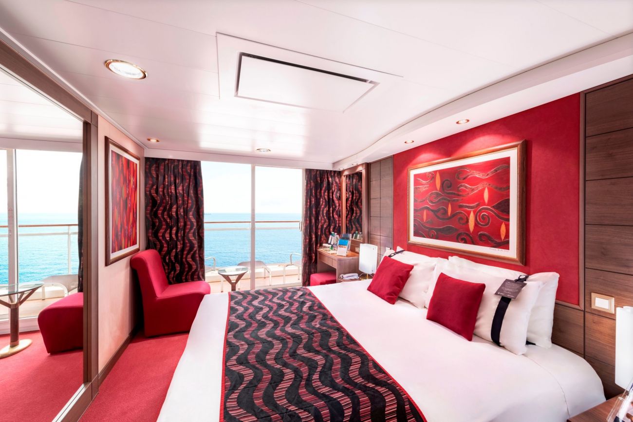 Корабът предлага суити с площ от 40 до 70 м2, идеални за двама или цялото семейство. Каюти с балкон, каюти с прозорец / не се отваря /, вътрешни каюти. Всички с интерактивна ТВ, климатик и всички удобства, необходими за една морска ваканция.