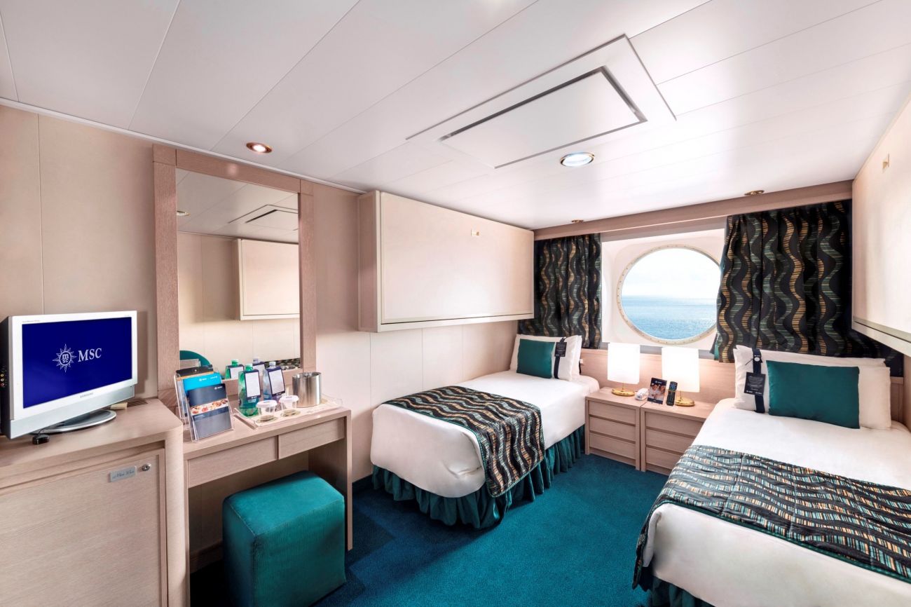 Суити с джакузи, каюти с балкон, каюти с прозорец /не се отваря/, вътрешни каюти, каюти за инвалиди. Всички със сателитна ТВ, телефон, сейф, сешоар, климатик, минибар. Интернет и рум сървиз срещу заплащане. Повечето разполагат с диван, който се превръща в трето легло или 2 легла една над друго за настаняване на 2 деца.