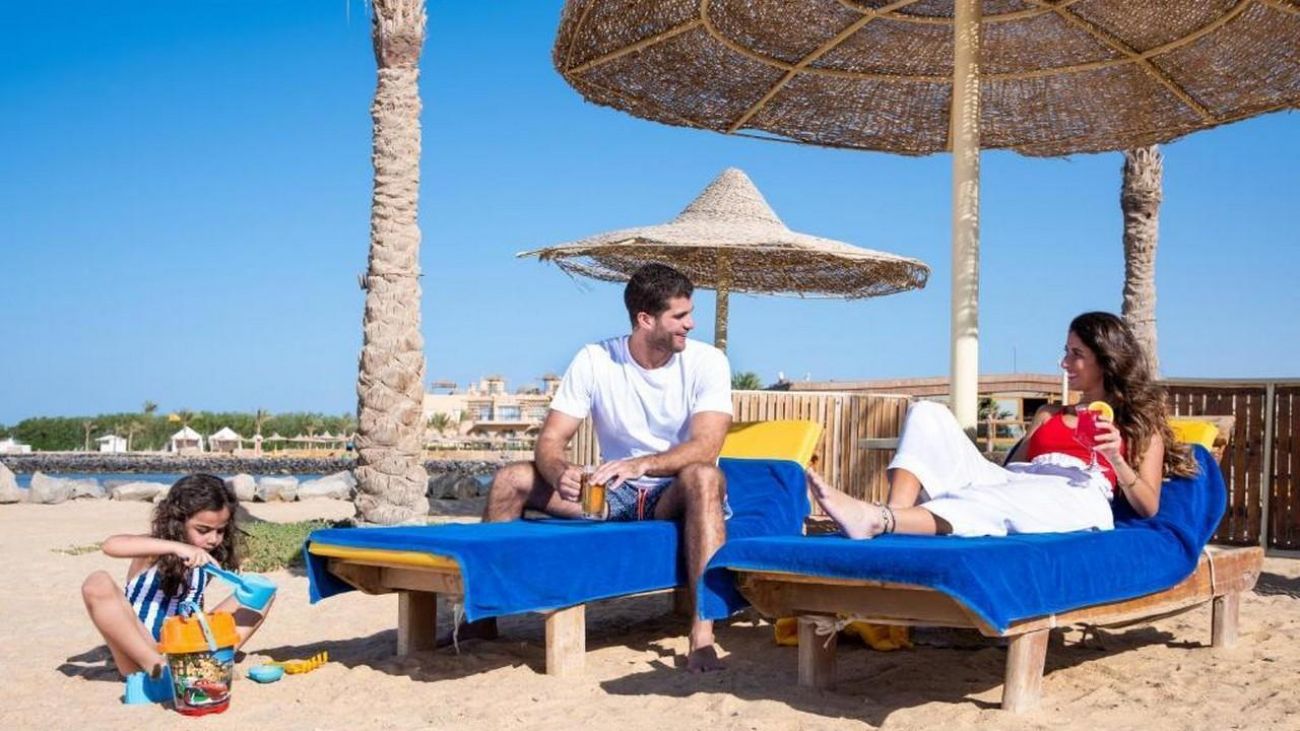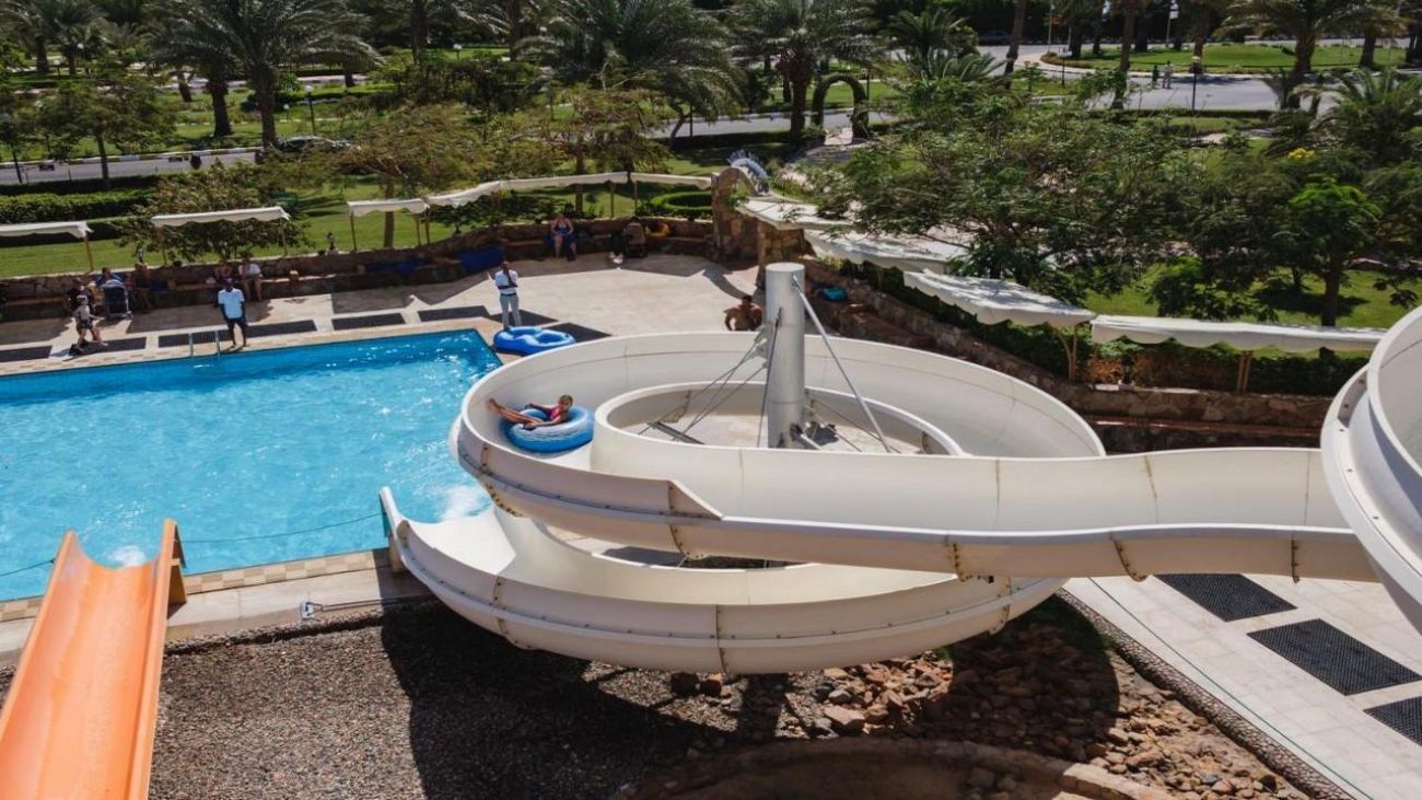 Desert Rose 5* разполага със собствен девствен пясъчен плаж с дължина от 1км, с 40 000 м² природна лагуна със златист пясък. Хотелът предлага на своите клиенти идеална атмосфера за забавления или просто да се насладят на прекрасния ненадминат климат на Червено море. Хотелът разполага с 4 плувни басейна, 1 с олимпийски размери, голям плувен басейн с палуби за слънчеви бани и бар край него, отопляем семеен плувен басейн и детски плувен басейн, специализиран за бебета и малки деца със собствен мини душ и мини столове. Като допълнение Аквапаркът предлага още и 6 водни пързалки.