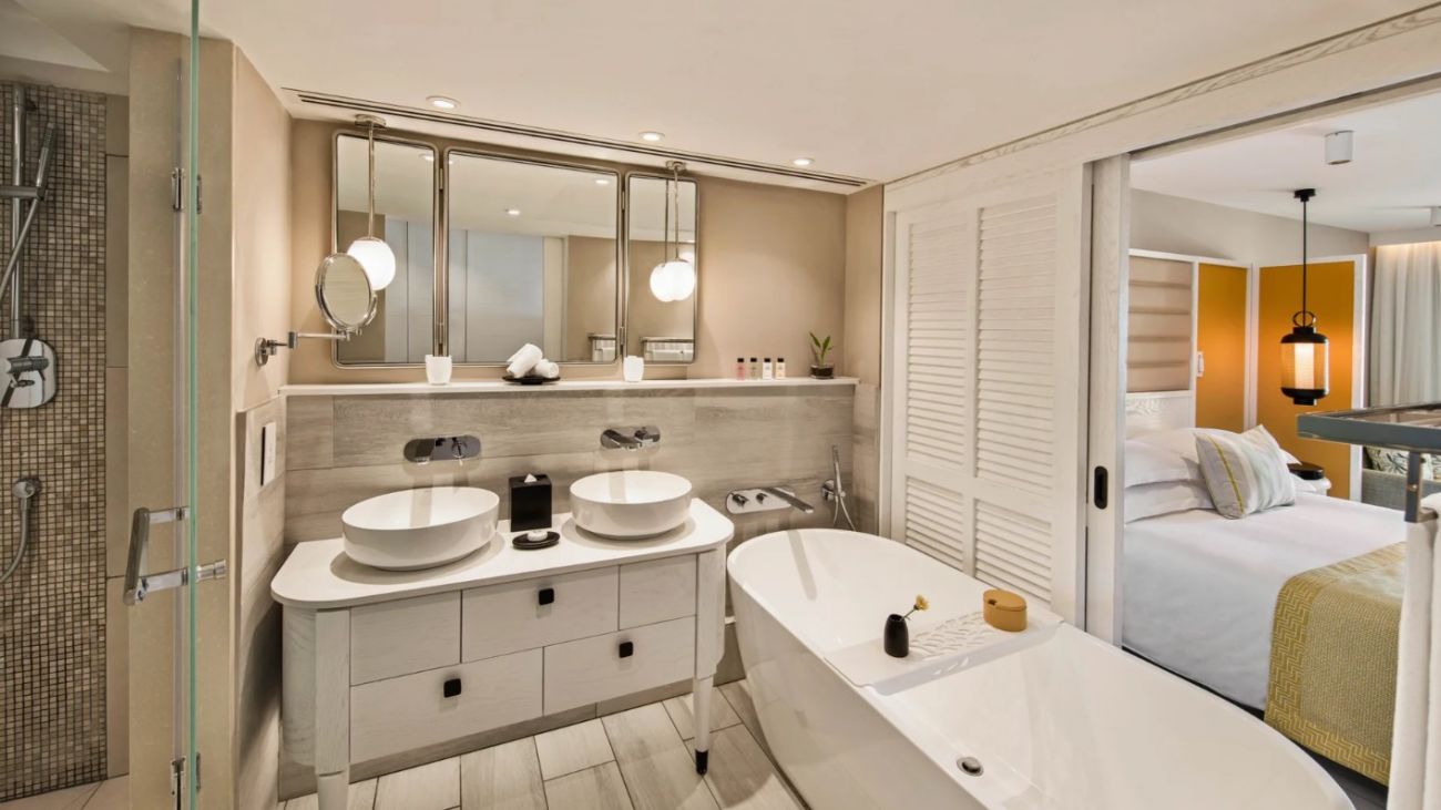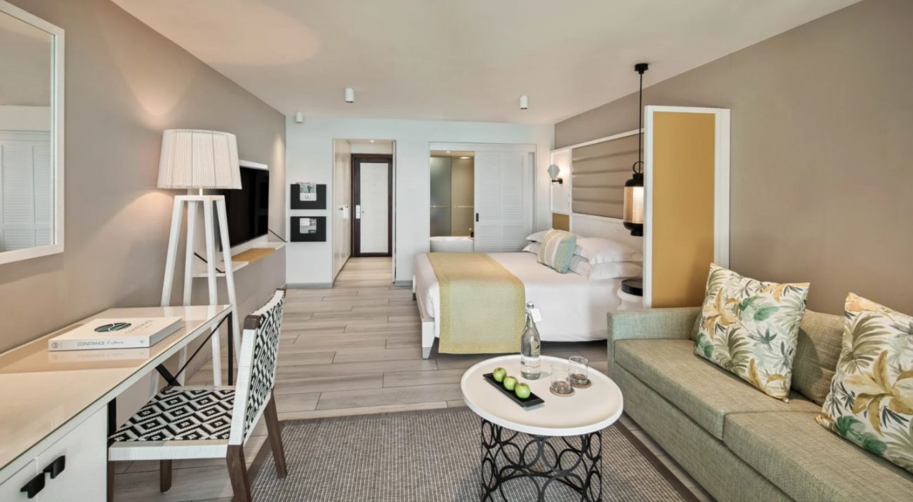 Всички климатизирани стаи в Constance Le Belle Mare Plage са с отделна всекидневна зона и сателитна телевизия. Мраморните бани са с голяма вана. Някои от тях са с изглед към Индийския океан.