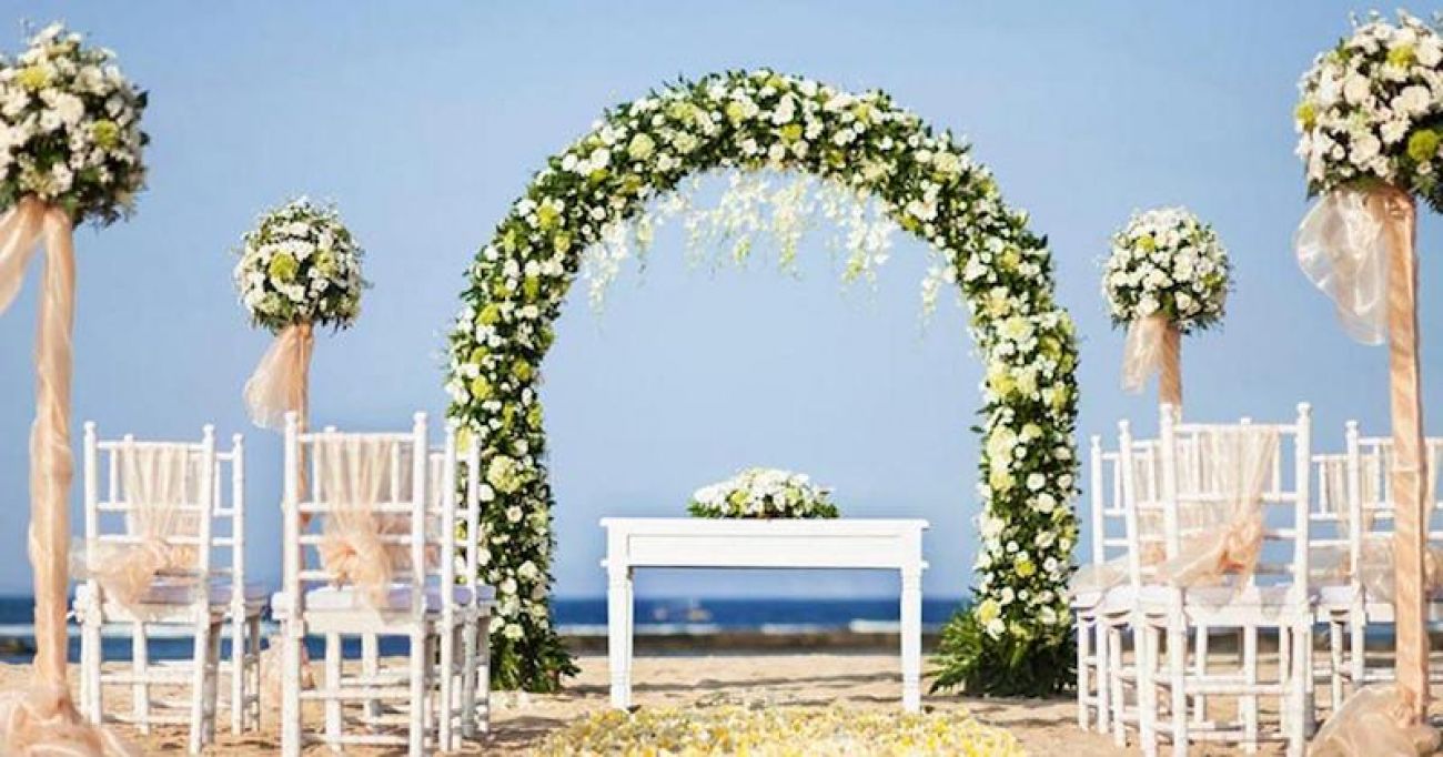 - Декорация на мястото за сватбената церемония на плажа;