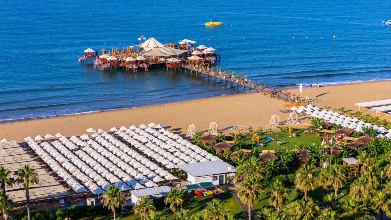 Собствен пясъчен плаж с дължина от 400 м. Плажът се намира на около 300 м от хотела, като може да се използва безплатен шатъл. Eдин от най-хубавите плажове в Анталия. Чадъри, шезлонги и плажни кърпи на плажа и при басейна - безплатно. Бар на плажа - безплатно.