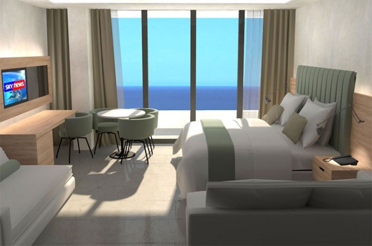 - Executive suite sea view - 56m²: Тези елегантни и стилно декорирани апартаменти се състоят от спалня с пълноценни удобства, включващи джакузи вана, както и щедър салон с кът за сядане, разтегателен диван и самостоятелна баня. Тези стаи водят до напълно оборудван балкон със зашеметяваща гледка към морето.