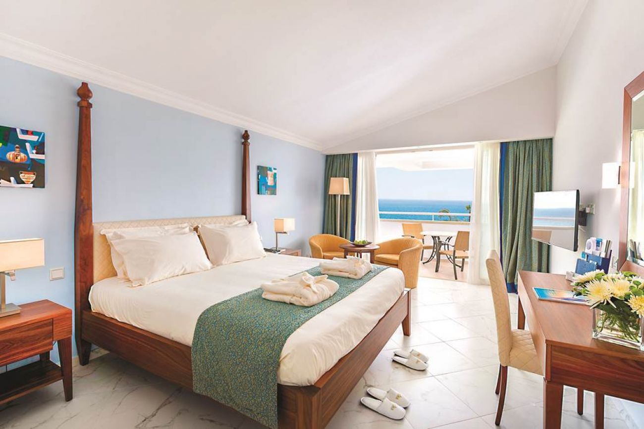 Всички стаи и суити в Olympic Lagoon имат кът за сядане с плоскоекранен телевизор със сателитни канали. Всички разполагат с малък хладилник и собствена баня с безплатни тоалетни принадлежности и сешоар. Някои помещения за настаняване предлагат балкон или тераса и гледка към Средиземно море.