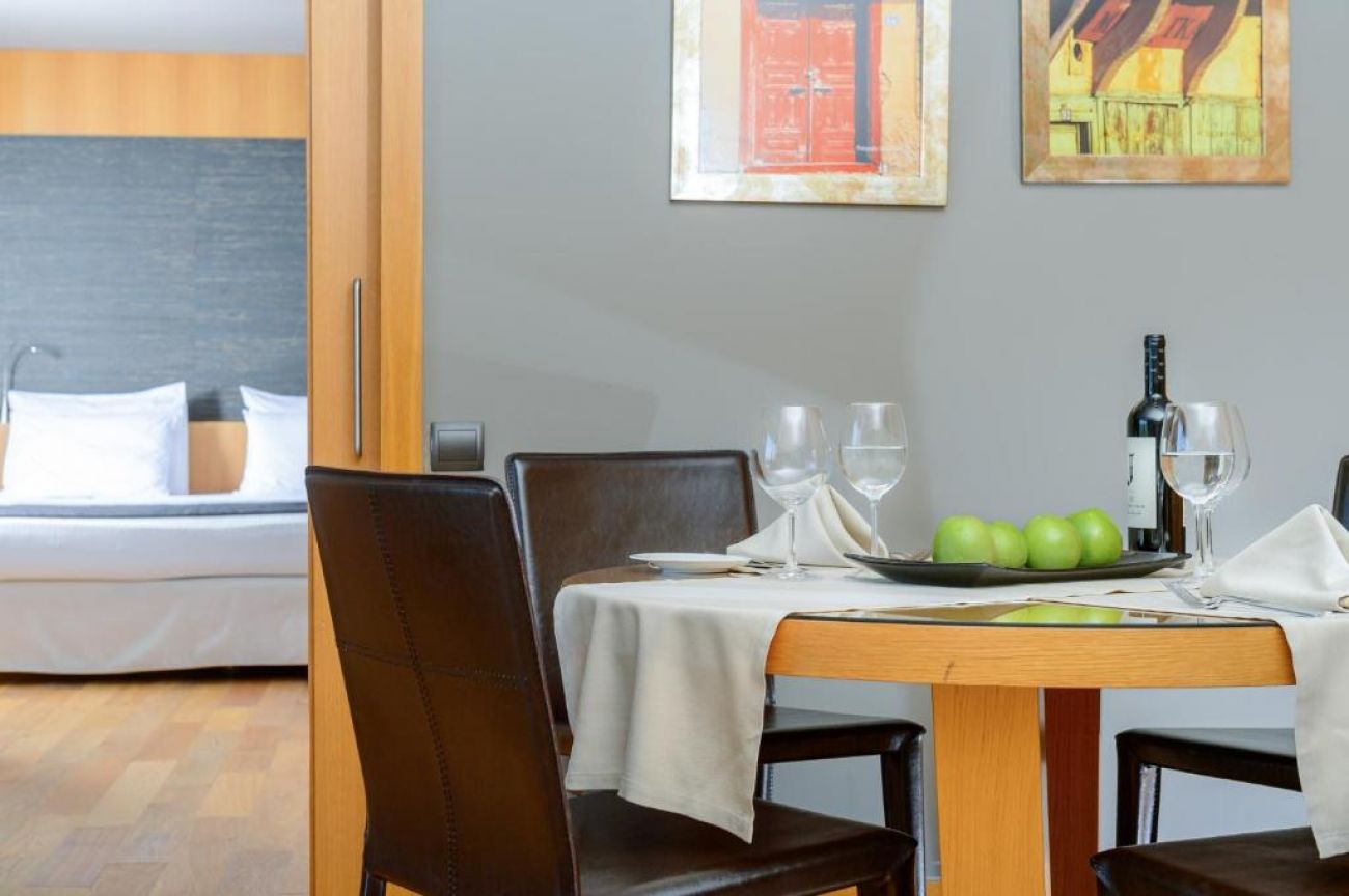 В стаите има климатик и санитарен възел. Освен това могат да се ползват минибар и писалище. Към стандартното оборудване принадлежи също хладилник. Към допълнителните удобства спада комплект ютия с дъска за гладене. Малки екстри, сред които достъп до интернет, телефон и телевизор, гарантират приятен престой. Допълнителен уют се осигурява при възможността за избор на подходяща възглавница. Могат да се резервират стаи, подходящи за хора с двигателни проблеми. Оборудването на санитарните възли включва душ. Сешоар и халати за баня са предвидени за ежедневно ползване. За по-голям комфорт в санитарните възли се осигуряват козметични продукти. Възможно е да бъдат резервирани стаи със санитарни възли, пригодени за хора в инвалидни колички.