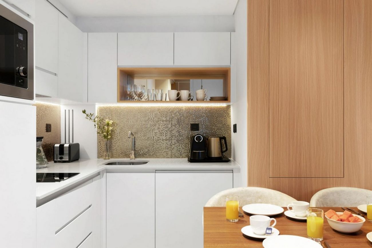 - Studio king bed: 30 кв.м, спалня, кухненски бокс, баня с тоалетна, душ.
