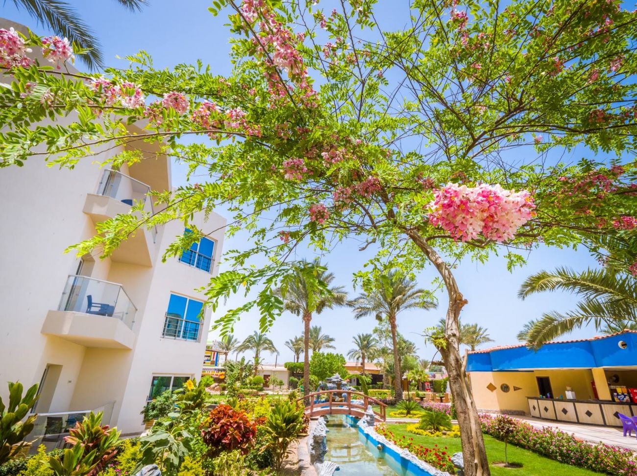 Разположен e в самия център на Хургада и 10 км. от летището, на брега на морето и на 25 км. от Ел Гуна. Построен през 2001 г., последно реновиран през 2017 г.