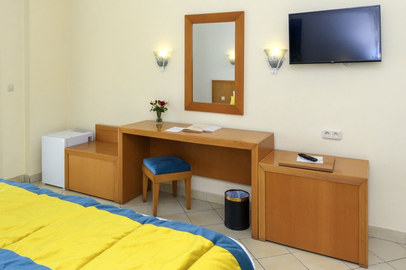 Хотелът разполага с 233 стаи, разположени в основна сграда с асансьор, от които Standard Room (24 - 32 кв.м) за до 4 човека, Sea View Room (24 -28 кв.м.). Всички стаи са оборудвани с климатик, телевизор, телефон, сейф (платен), баня с душ/ вана, сешоар, балкон или тераса, мини бар (платено, при поискване), тоалетни принадлежности. Почистване на стаите - всеки ден.