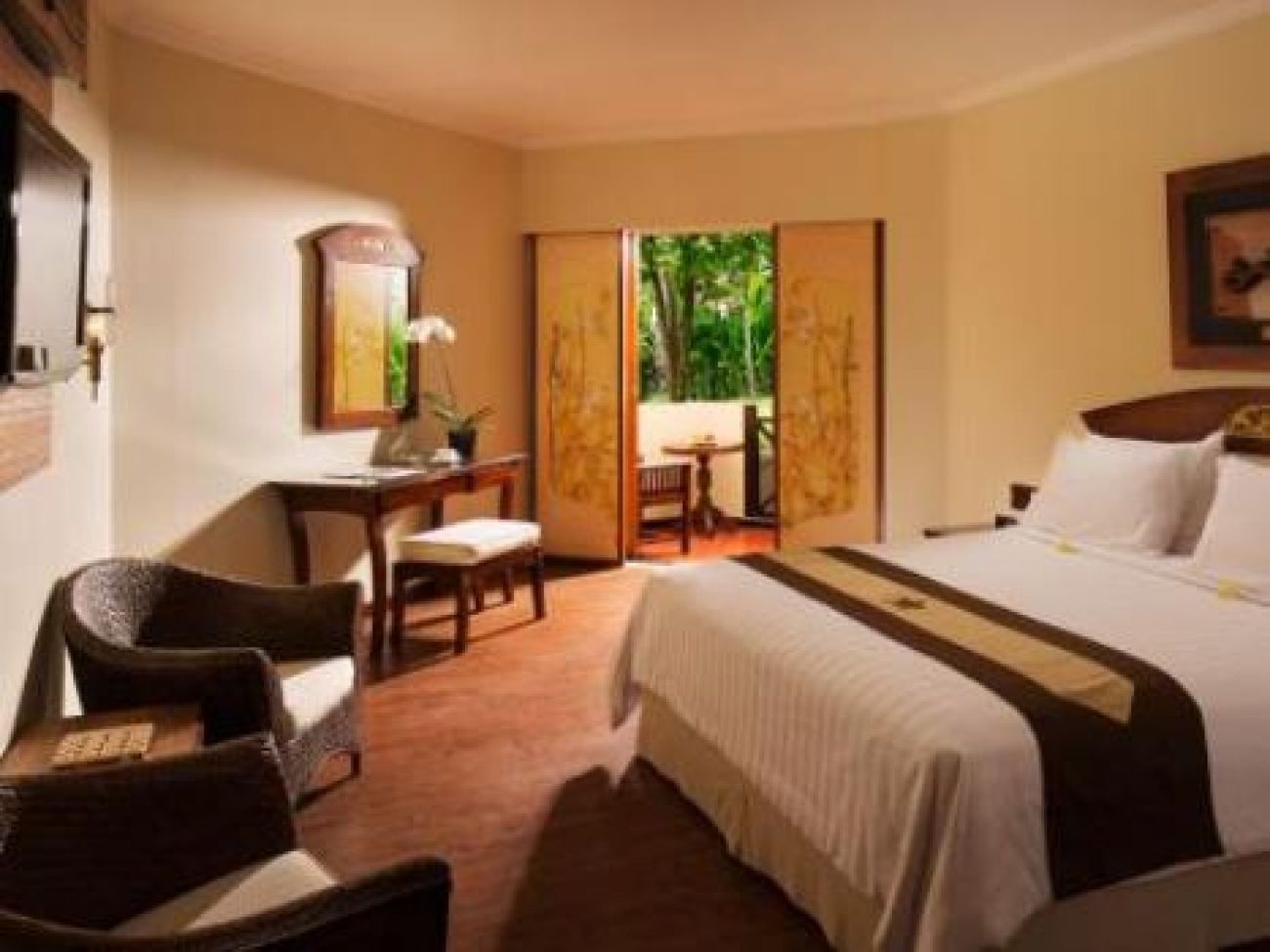 Разполага със 161 стаи Superior Garden/ Lagoon View (с изглед към градината или лагуната), 123 стаи Deluxe Sea View (изглед към морето), 2 семейни бунгала, 1 Sultan Suite, тераса с изглед към океана, градината или лагуната, климатик, сателитна телевизия, телефон, сейф, радио, минибар, термо кана за чай/кафе, баня с вана/душ, сешоар.