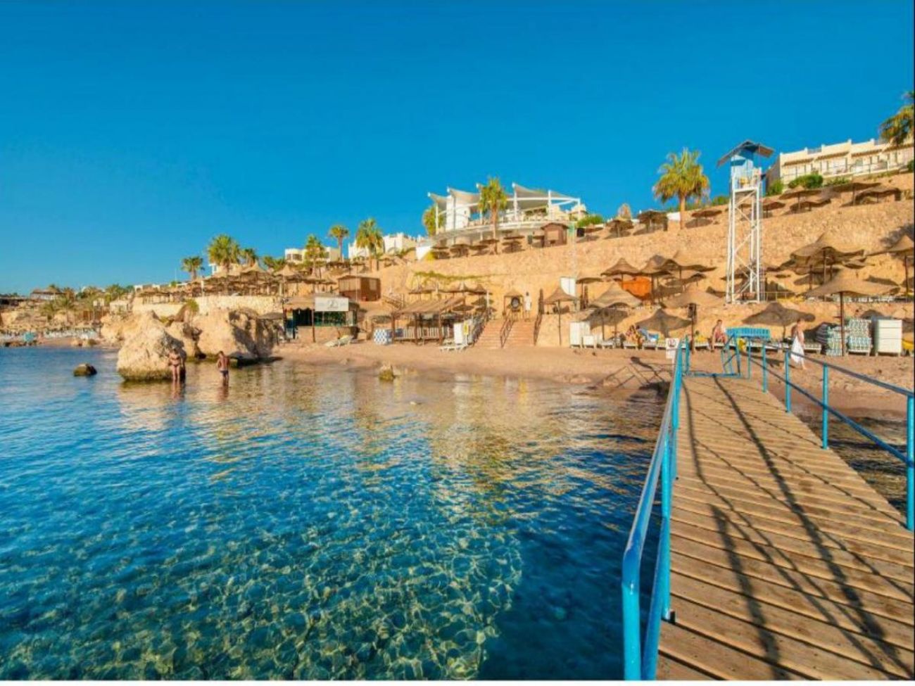 Собствен, пясъчен с коралов риф. Чадъри, шезлонги, и плажни кърпи на плажа и при басейна - безплатно.