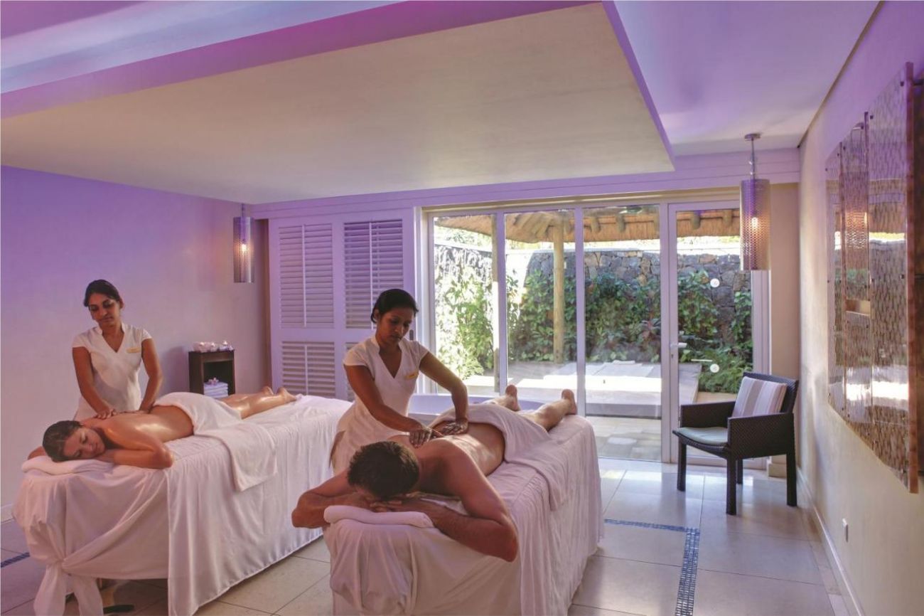 Това е луксозен хотел с изглед към Ресторантите на хотелски комплекс Sugar Beach сервират приготвени с въображение рецепти от Мавриций, италианска и интернационална кухня. Гостите могат да се насладят на спокойствието с апетитен коктейл в бара. До голф клуб Ile Aux Cerfs с 18 дупки може да се стигне с трансфер с лодка от Pointe Maurice, който се намира на 60 метра от комплекса. Удобствата в хотела включват още фитнес център и слънчева тераса. Индийския океан, който предлага СПА и уелнес център, тропическа градина и голям открит басейн.