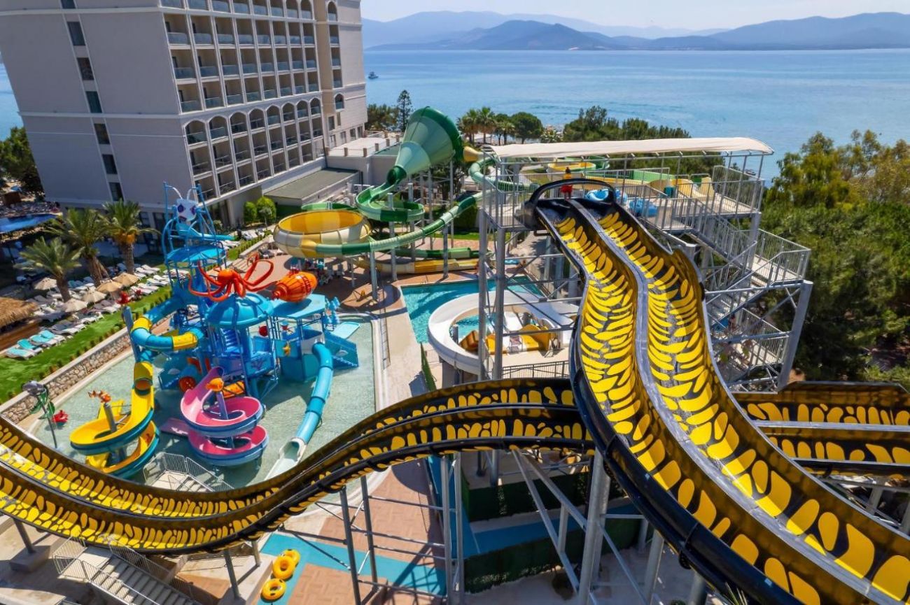 На разположение на гостите на хотела е аквапарк, който разполага с 2 басейна, 7 водни пързалки за възрастни, 5 водни пързалки за деца, центрофуга и водни съоръжения за най-малките.