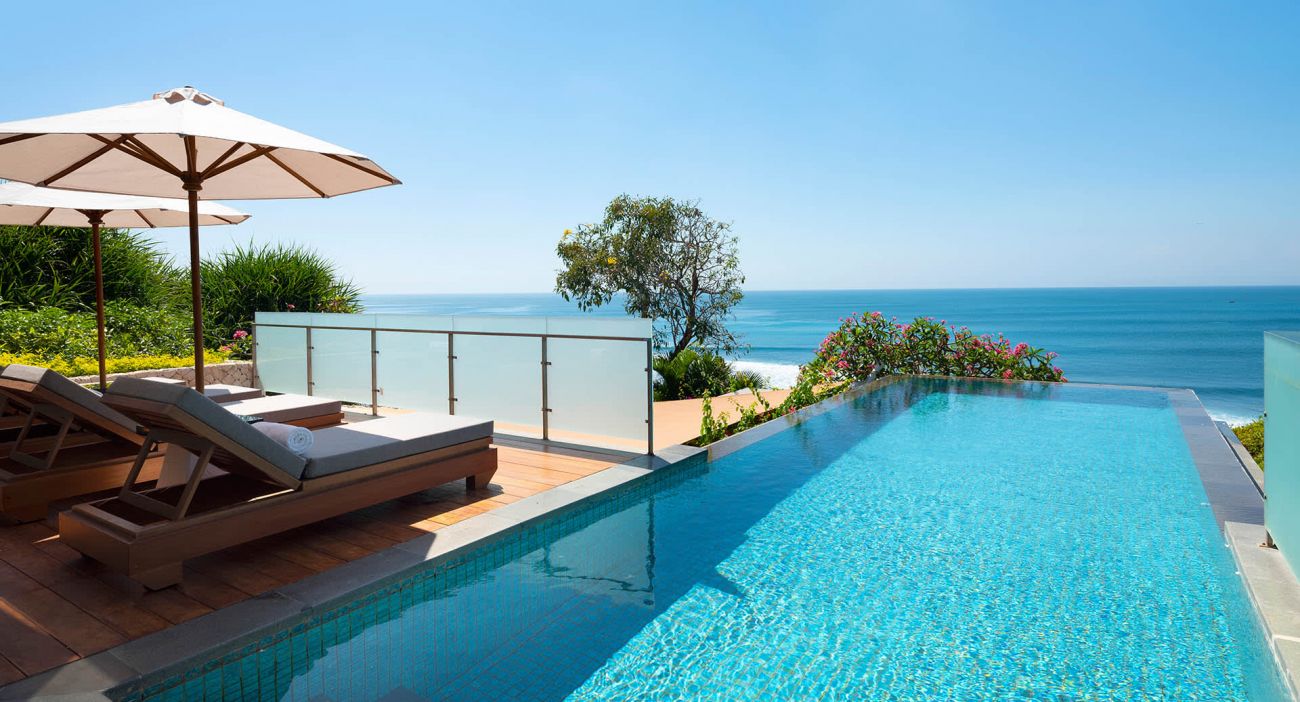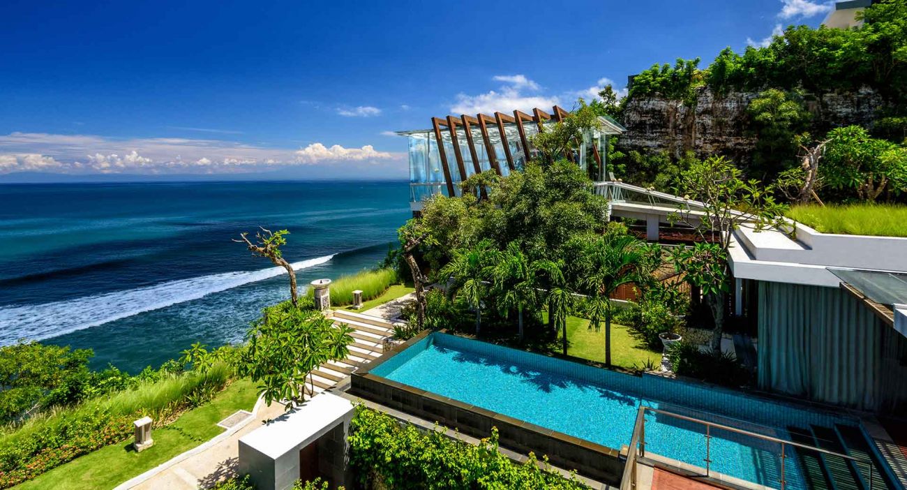 Бутиковият курорт, кацнал върху скалите се намира в Улувату и е разположен на западния бряг на полуостров Букит в Бали.
