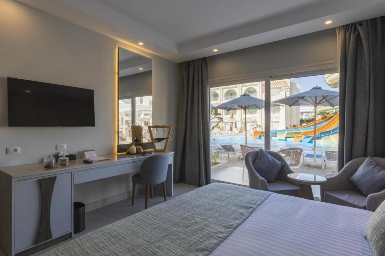 Основен ресторант, 7 а ла карт ресторанта (италиански, барбекю, египетски, азиатски, диетичен, стек, морски-платен), 8 бара, 6 басейна, дневна и вечерна анимация, амфитеатър, банкомат, магазини, аква парк с 6 водни пързалки, денонощна рецепция, асансьор в основната сграда, СПА център, конферентна зала, анимация, жива музика.