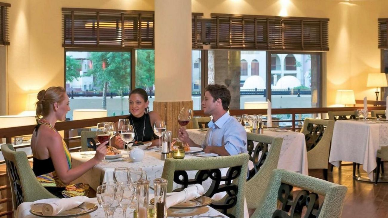 Гастрономическото изживяване е разнообразно и богато: хотелът разполага с няколко ресторанта – основен международен бюфет „Najel“, италиански „Casalingo“, а-ла-карт край басейна „Sejan“, лоби-бар „Baraka“, бар-градина „Siraj“ с шиша и забавления на живо, както и още обществени барове – „The Bop“, „Mello“, „Azure“.