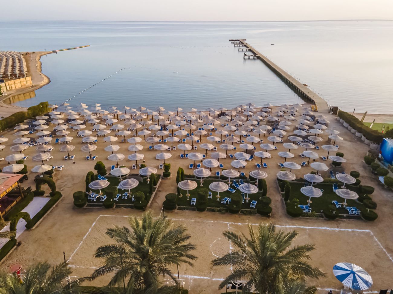 Собствен, пясъчно-каменист с корали.  Чадъри, шезлонги и матраци на плажа и при басейна - безплатно. Плажни кърпи – безплатно.