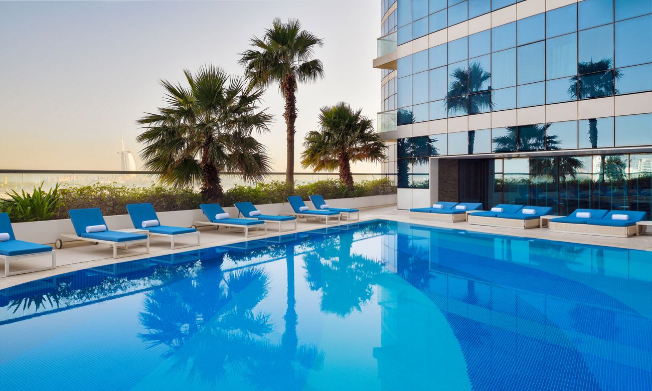 Безплатни услуги: Oткрит басейна с гледка към Бурж Ал Араб, Спа център, фитнес, Wi-FI на цялатга територия на хотела, шатъл до големи молове и атракции всеки ден - Dubai Outlet Mall и Nakheel Mall, разположен на Palm Jumeirah.