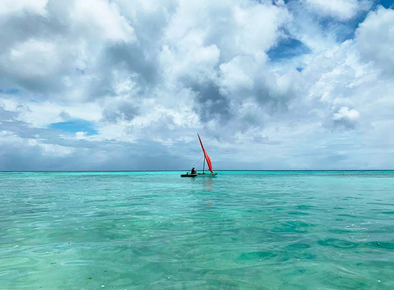 Пълен ден на арабска лодка доу сред тюркоазените води. След кратко пътешествие спирате на ивичка пясък сред океана, т.нар. пясъчна коса, Kwale, където се подготвят сенчести тенти за приятна отмора с дегустация на тропически плодове. Възможност за гмуркане с шнорхел или къпане и много снимки.За огромно съжаление. рифът е започнал да линее поради човешката намеса... Следваща спирка - мангровата лагуна, където може да поплувате. После ви очаква огромен 500- годишен боабаб. И точно преди да прегладнеете – отивате на синята лагуна, където е сготвен вкусен обяд от гриловани морски дарове - лобстери, раци, скариди, риба, калмари. Ако не обичате морска храна, алтернативата е пиле или вегетарианско меню по предварителна заявка. И тъй като океанът не спира да се движи – през деня лодката се догонва ходейки през водата. Трудно се прогнозират разстоянията, които трябва да се "прегазят" във водата. По-удобно ще е да се носят обувки за вода - срещу евентуална среща с морски таралеж.