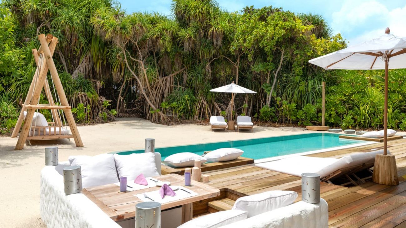 • 3 Beach Hideaway (480 кв.м.) - двуетажни крайбрежни вили с басейн с плъзгащ се покрив. На партерния етаж има спалня с двойно легло, детска спалня, полуотворена баня с вана и душ, стаи за йога и медитация, тераса с басейн с прясна вода, с хамак на вода, шезлонг и люлки на плажа. На втория етаж има тераса с развлекателна зона и фитнес зала. Максимално настаняване е 3 възрастни или 2 възрастни и 2 деца.