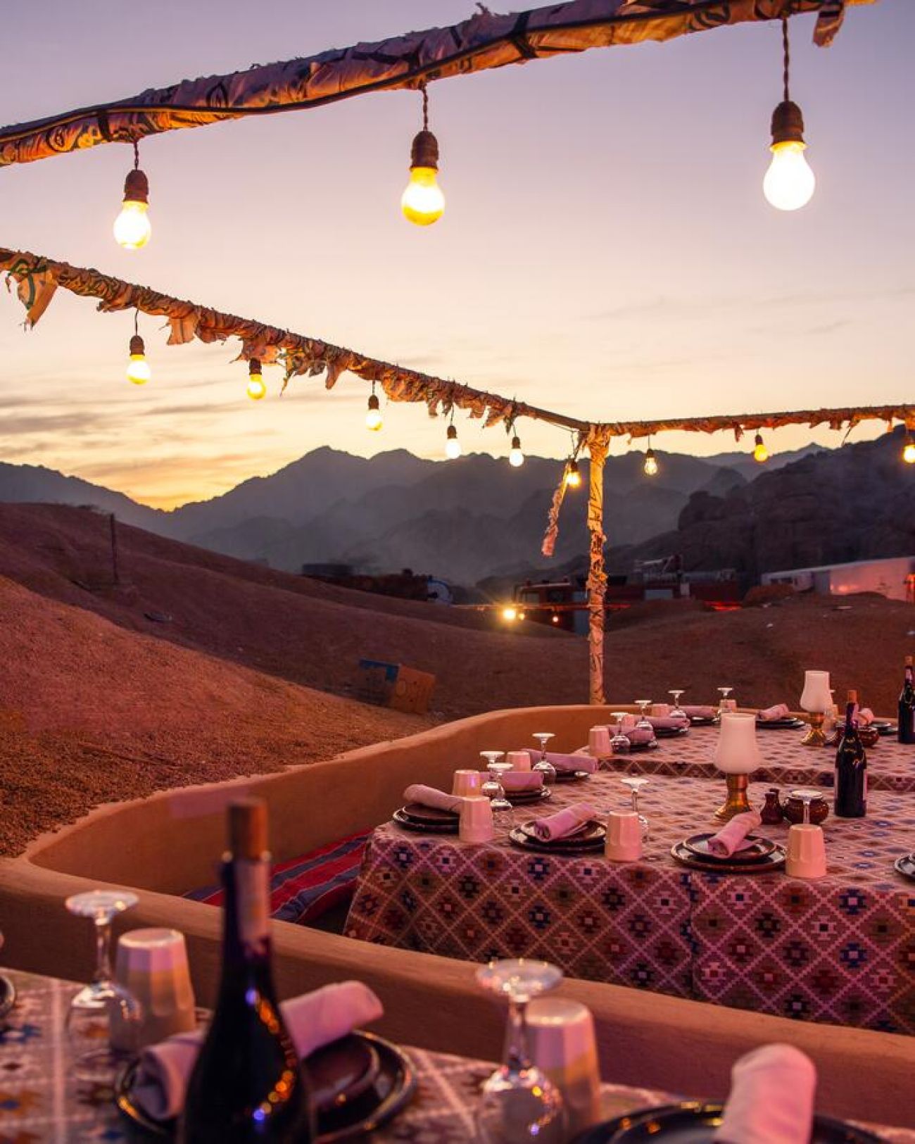 Цена: 55 EUR на човек (АТВ за двама). Цената включва: бедуинска вечеря на шведска маса с включени морски дарове, шоу програма. Цената не включва: напитки и наргиле, разходи от личен характер.