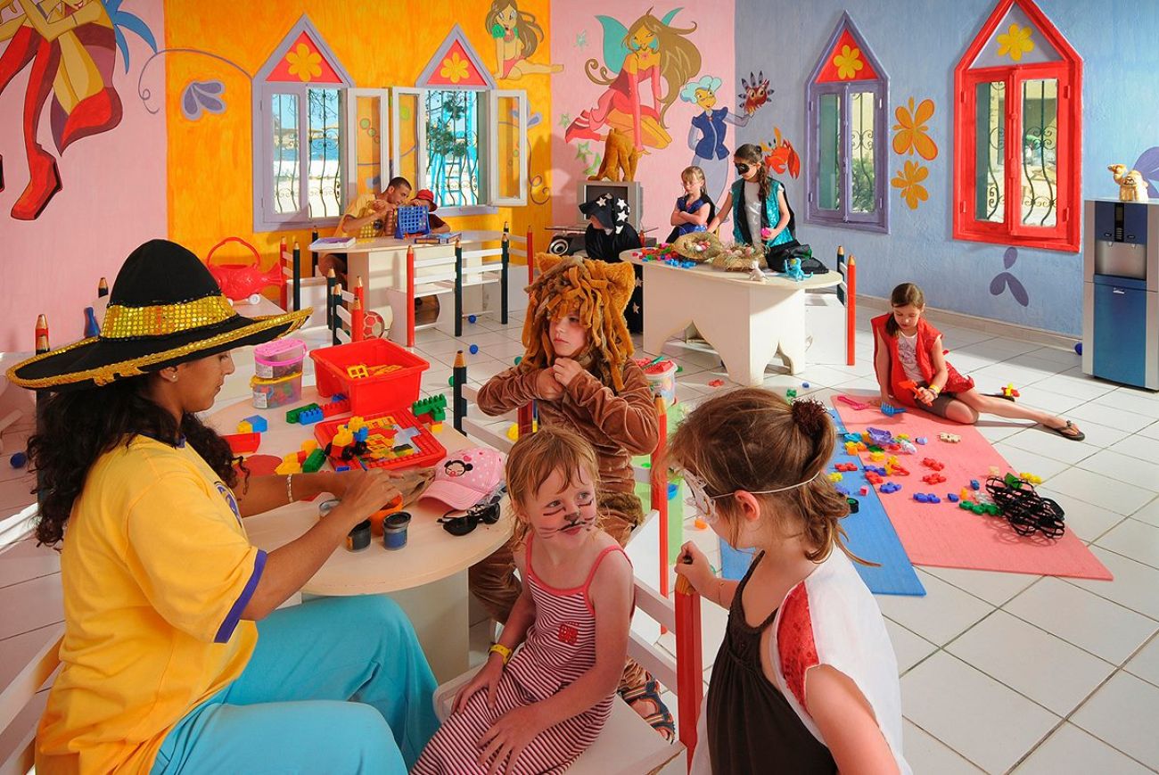 За децата: детски басейн с мини пързалки, втори детски басейн, мини клуб (4-12 год), детска площадка, детски столове в ресторантите, бебешка кошара (по заявка, при наличност).