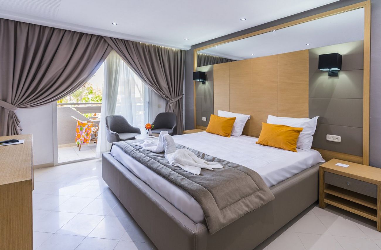 Хотелът разполага с общо 308 стаи, разположени в триетажни сгради, като основната сграда разполага с два асансьора - Standard Room (29 кв.м), Sea View Room (29 кв.м), Superior Room Garden View (29 кв.м), Connecting Room (две стаи със свързана врата).