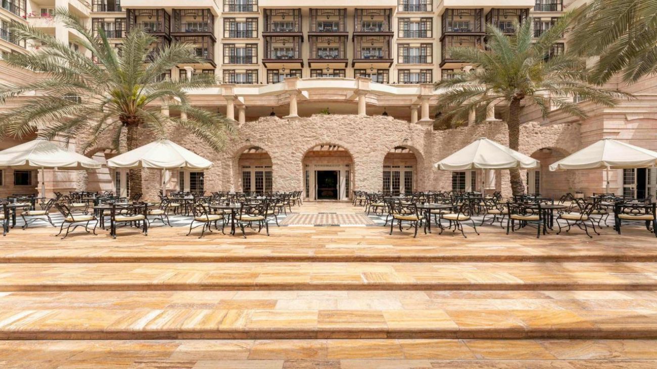 - Няколко ресторанта и бара: Palm Court Restaurant & Terrace; Al Shatt Restaurant & Terrace; Bakery Shop & Café; Red Sea Grill; Al Nafoura Lobby Bar; Al Sufra Mediterranean Restaurant & Terrace. movenpick.accor.com+1