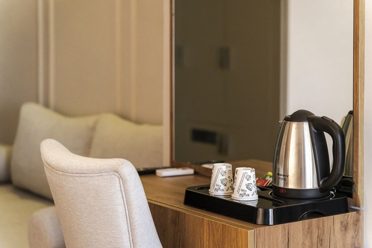 Всички стаи са оборудвани с климатик, телевизор, телефон, баня с душ, сешоар, мини бар (зарежда се еднократно с безалкохолни напитки и вода в деня на настаняване), сет за кафе/чай, сейф (безплатно), Wi-Fi, балкон. Почистване на стаите - всеки ден, смяна на спално бельо и кърпи - 2 пъти в седмицата.
