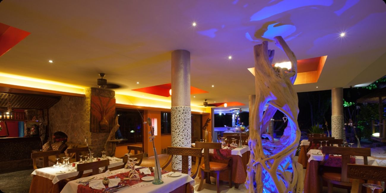 Разполага с 2 ресторанта: основният ресторант „Le Dauphin“ се намира до басейна и предлага автентична креолска кухня, а стилно обзаведеният а-ла-карт ресторант „Café des Arts“ е разположен точно на плажа и е известен със своите специалитети с морски дарове. В хотела има също така бар, лаундж с телевизор, безплатен интернет - по 1 час на ден, след това се заплаща, бутик, малка библиотека, басейн, детски басейн, шезлонги и велосипеди под наем.