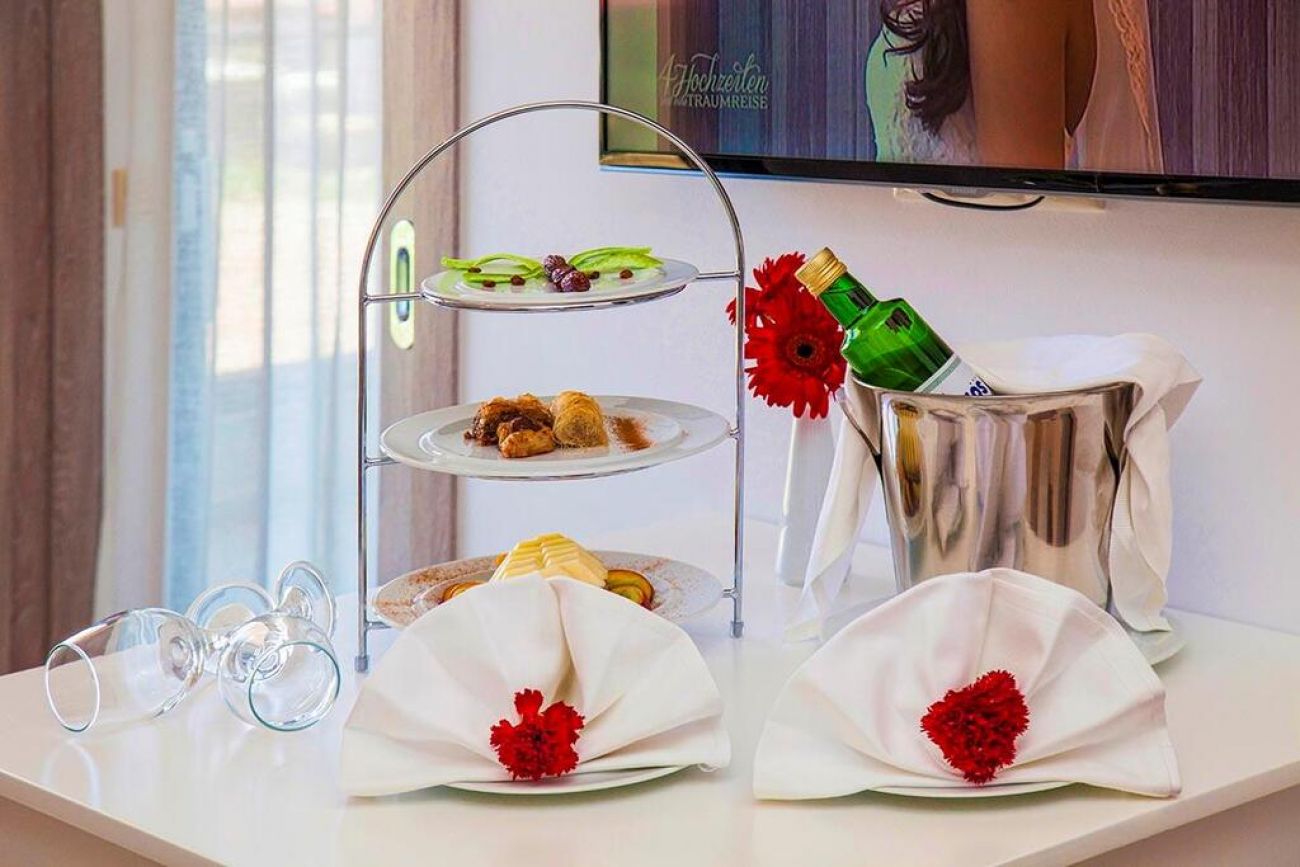 Стаите са с изглед към басейна или градините, а на разположение има и стаи с изглед към морето.