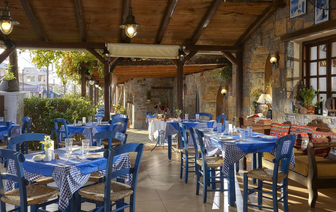 Комплексът има 2 ресторанта - Meltemi, в който се приготвят традиционни гръцки специалитети и основният ресторант, който е по-официален и е с прекрасен изглед към залива. Има и таверна - Kriti. Освежаващи напитки се сервират в бар Apollo край басейна, основния бар, плажния клуб Alexander и салон Alexander.