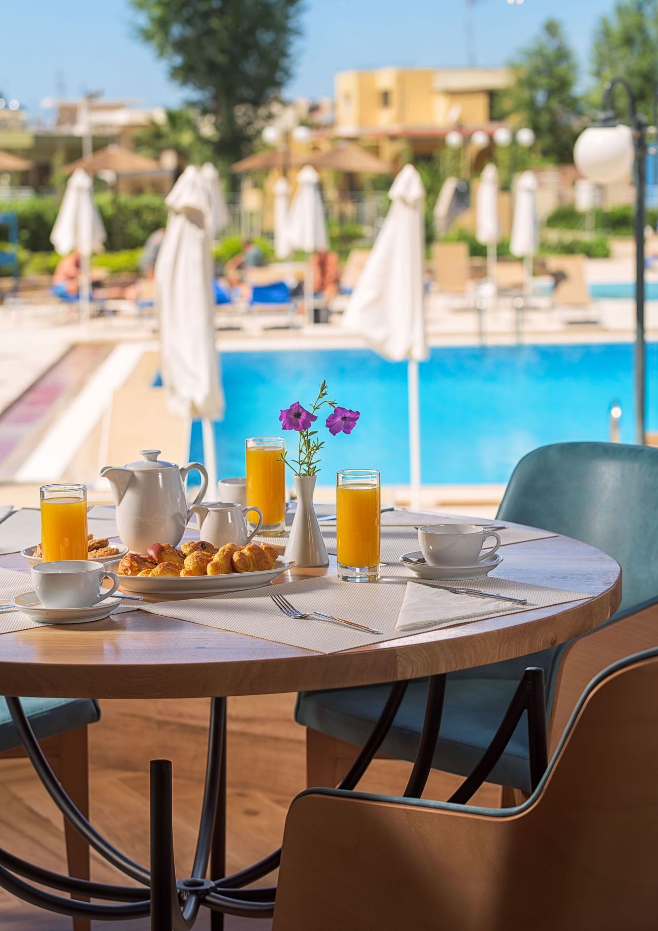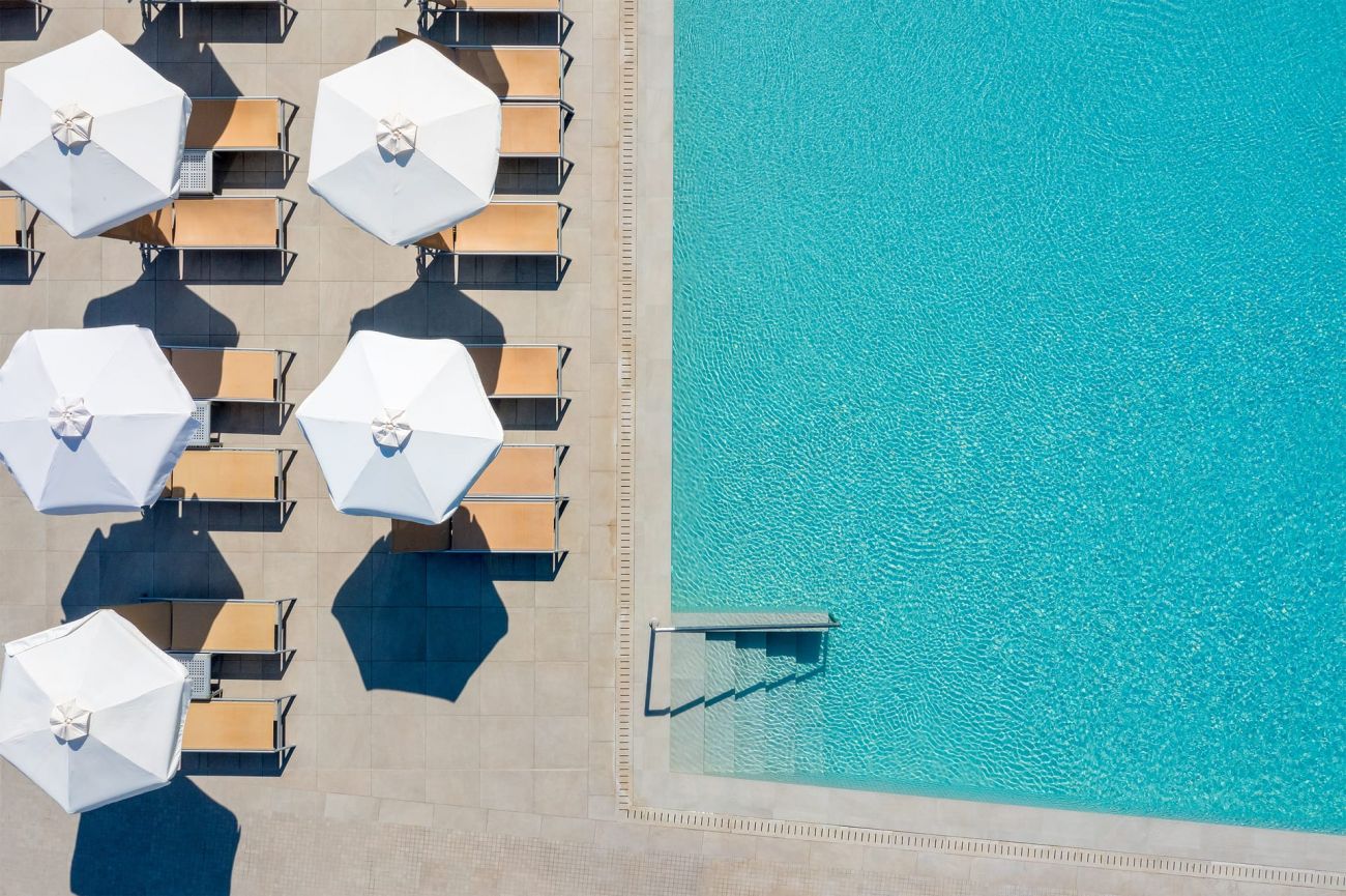 - Шезлонги и чадъри на басейна