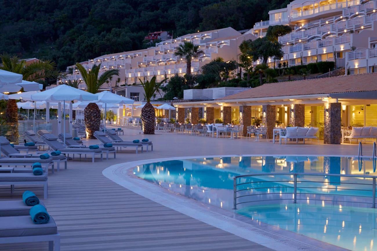 На едно наистина уникално място, на плажа Контогиалос, един от най-добрите плажове на Корфу, вашата мечтана ваканция е огряна от известното гръцко слънце и носи мириса на морски бриз. Луксозен комфорт, първокласни услуги и набор от съоръжения съставляват гостоприемство за всеки член на семейството в манастира Пелекас. Хотелът се състои от 189 стаи, повечето от които са с панорамна гледка към Йонийско море и величествения залез на Корфу. Техният съвременен дизайн и уютна атмосфера могат да осигурят изживяване при настаняване, което може да задоволи и най-взискателните посетители. Само на 15 минути от град Корфу, манастирът Пелекас съчетава спокойствието на морето с атрибутите на града. Всеки ден е пълен с радостни разходки и ярък нощен живот в центъра или пълен с гастрономически приключения в нашите ресторанти или приятни моменти в баровете на нашия хотел. Сред зеленината природа, в манастира Пелекас ще намерите всичко необходимо, за да направите всеки ден изключителен и да вземете у дома уникални ваканционни спомени. Добре дошли в манастира Пелекас!